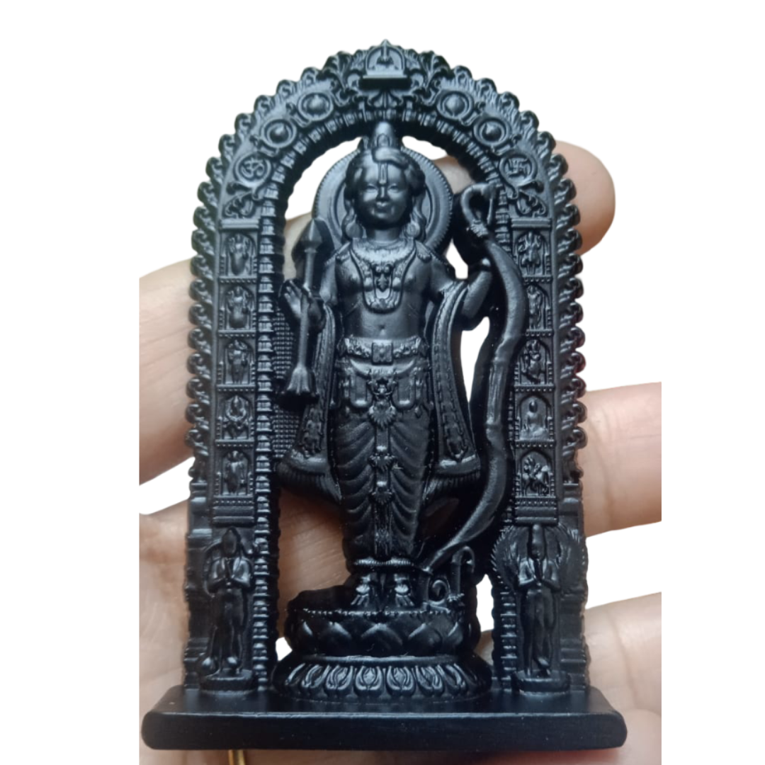 • SACRED DEITY STATUE: Intricately crafted Lord Ram Lala idol depicting the divine form from Ayodhya, featuring detailed ornamental arch with traditional temple architecture and decorative motifs
