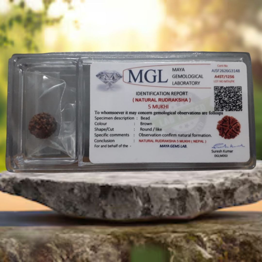 The Certified 5 Mukhi Rudraksha (Five-Face Rudraksha) is one of the most common and powerful Rudraksha beads, symbolizing the five forms of Lord Shiva (Panchmukhi Shiva). It represents peace, health, and spiritual growth. This Rudraksha is associated with the planet Jupiter (Guru) and is used as a remedy for Jupiter-related doshas, such as lack of wisdom, instability, and poor decision-making.